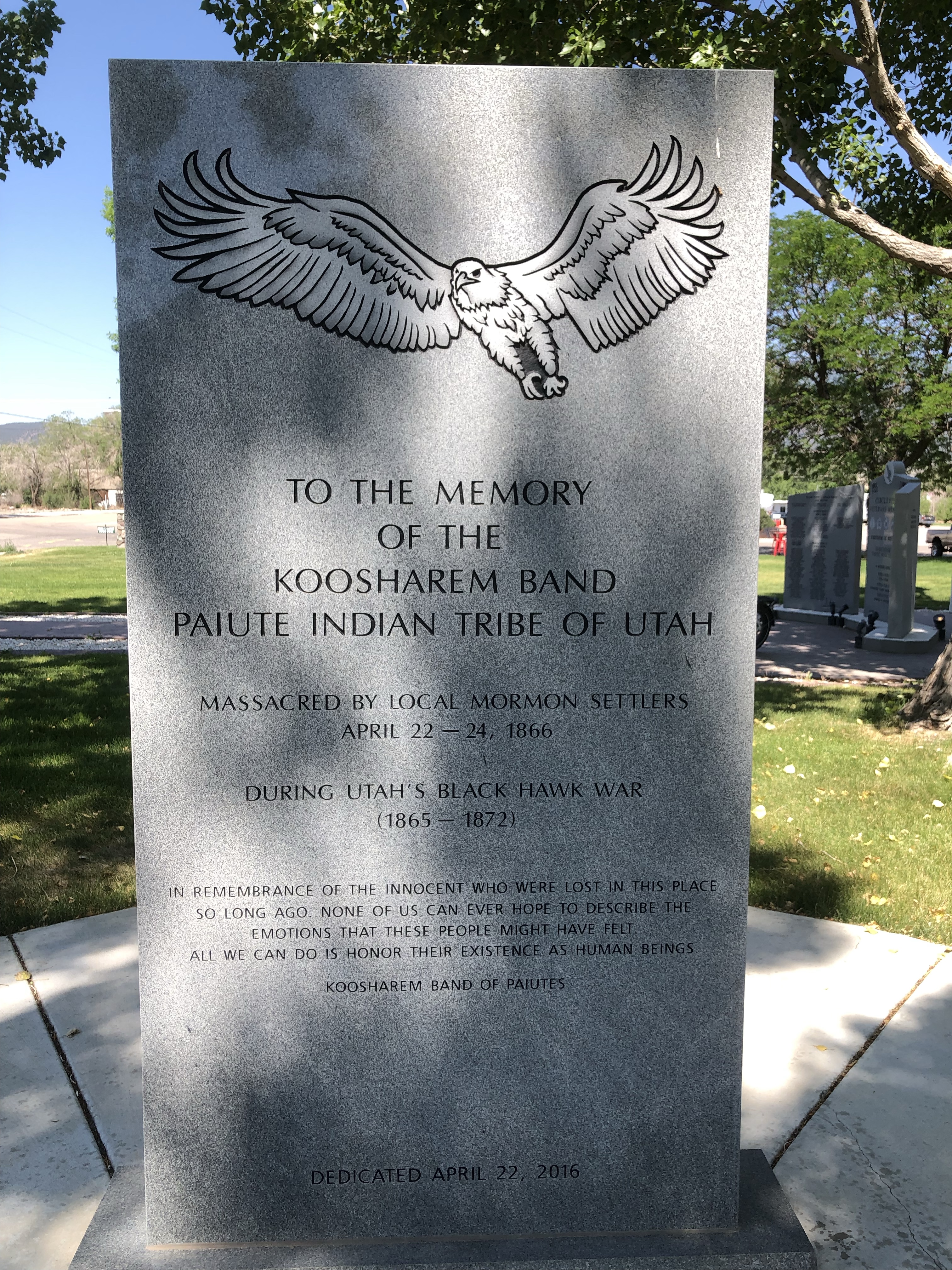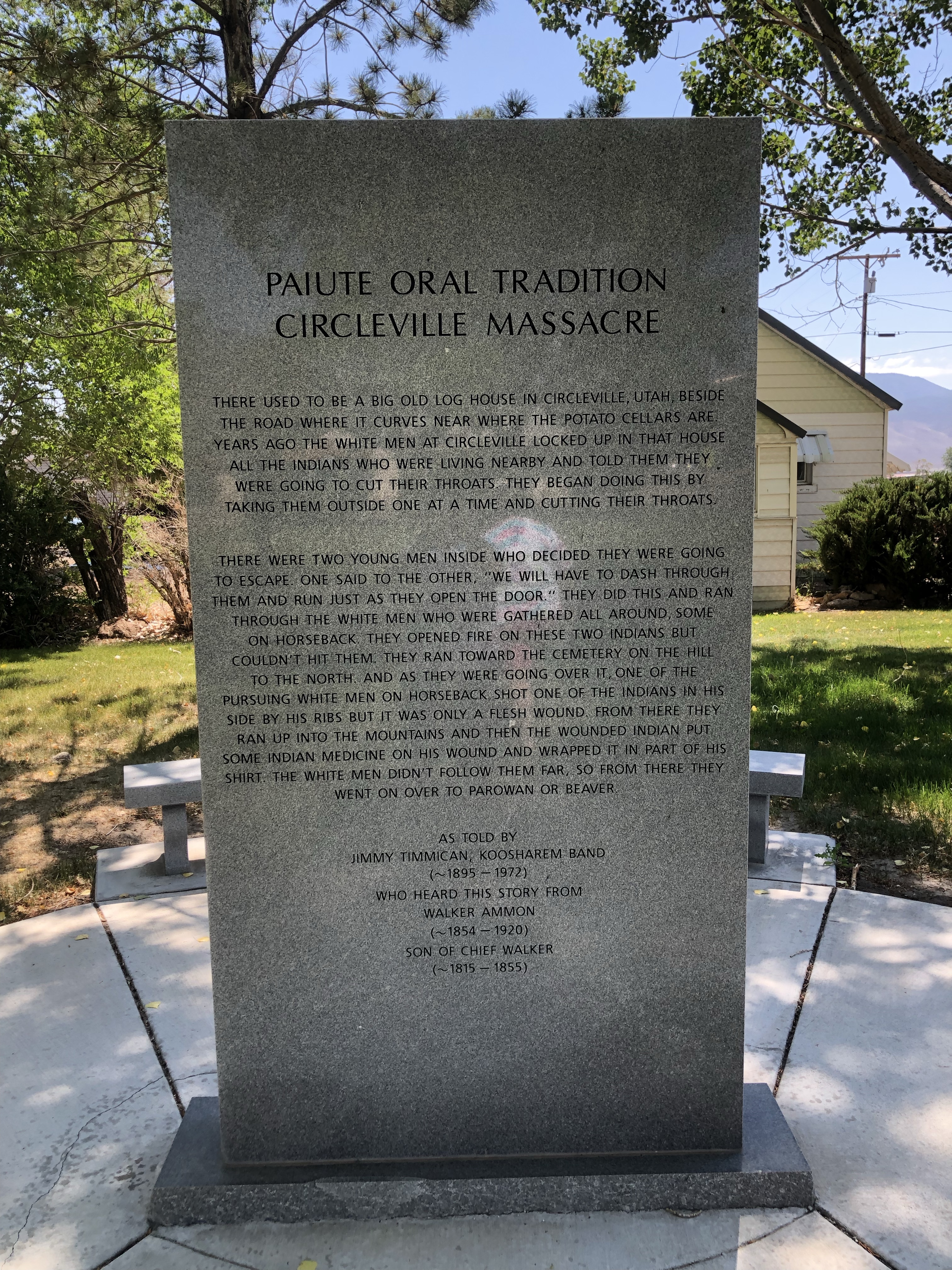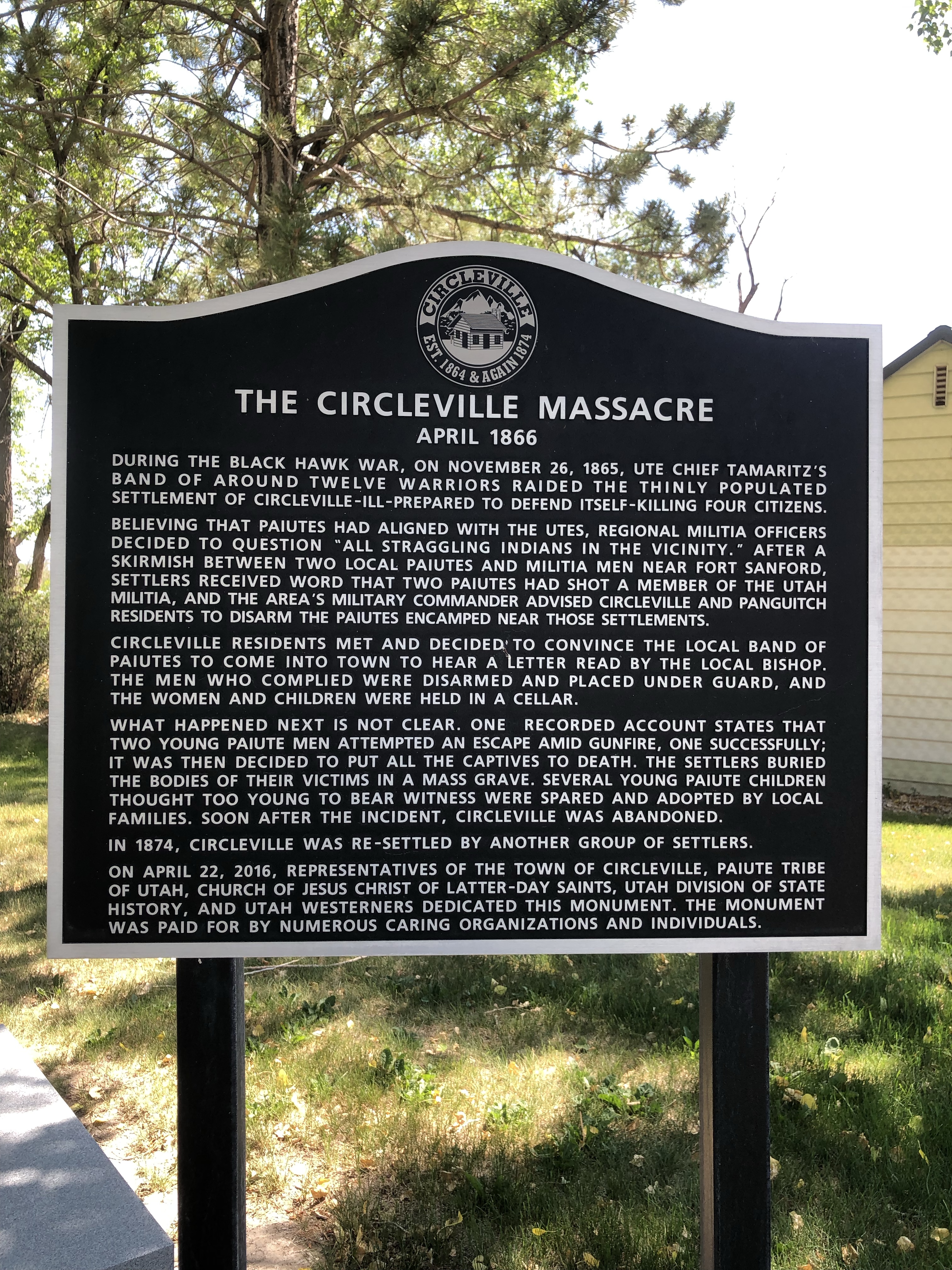 At the same park was a memorial to the Paiute Indians that were massacred during the black hawk war in 1866. On April 26,2016 the dedication ceremony for the Circleville Massacre memorial was held